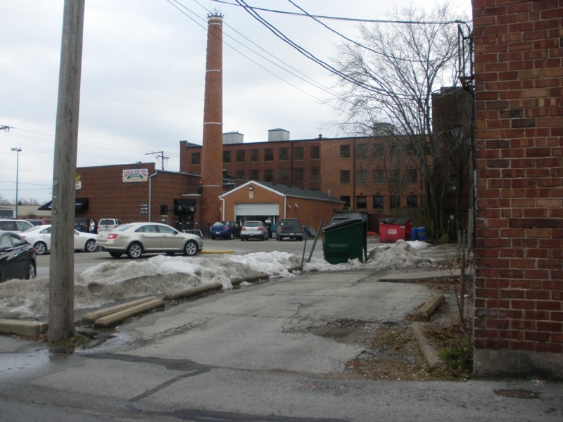 One of the reasons for this odd/long shot is I had to get the dumpster in where my friend Joe Doll threw up last St. Pat’s day. He was actually at Diamond Jim’s, one of many watering holes in this area, which is just to the right of said dumpster.