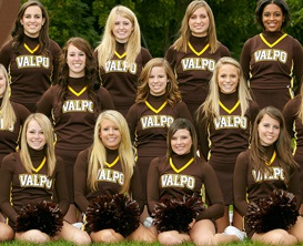 You almost can never go wrong with a cheerleading uniform. My friend Joe Doll used to say that even ugly gals look good in them. But brown? USC gets those Song Girl uniforms and NWI get’s brown? Now I think these are the colors for the football season. The basketball ones may be yellow or gold. But if brown is your thing I’m sure you’ll find plenty of it at the game. Hey, that one gal in the middle looks like a ginger.