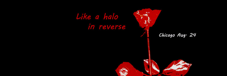 Anyway, in anticipation of the DM concert, Aidan has been posting customized Facebook covers featuring the band. None include the actual band members or the band name. They are simply images like edited album covers or something else band/album/song related (Depeche Mode has a lot of interesting imagery and symbols). Some of the images he found online and edited, or added lyrics or song titles referencing the band. Each one includes the date of the Chicago concert. Click for original size in new window.